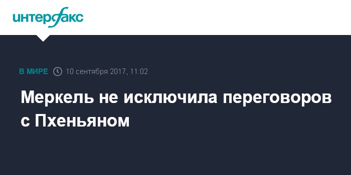 Москва. 10 сентября. INTERFAX.RU - Берлин готов использовать политический вес для дипломатического решения северокорейской проблемы, сообщила канцлер Германии Ангела Меркель в интервью, опубликованном в воскресенье в газете Frankfurter Allgemeine Zeitung ("Франкфуртер альгемайне зонтагсцайтунг").