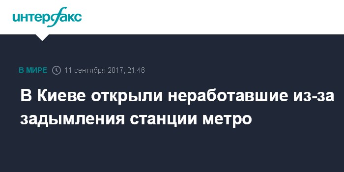 Москва. 11 сентября. INTERFAX.RU - Задымление в тоннеле между станциями синей линии Киевского метрополитена "Контрактовая площадь" и "Тараса Шевченко" возникло в результате попадания масла на перемычку контактной рельсы, возгорания не было, сообщает пресс-служба Госслужбы Украины по чрезвычайным ситуациям.