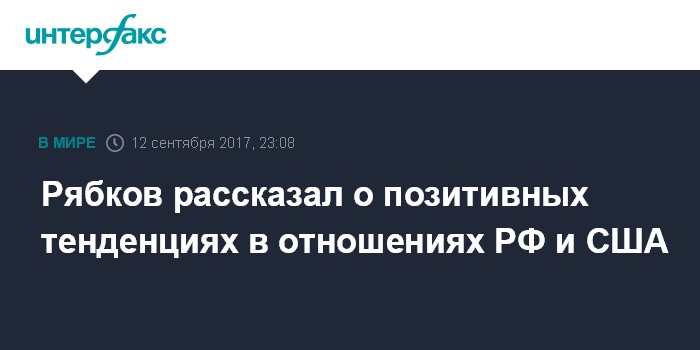 Рябков рассказал о позитивных тенденциях в отношениях РФ и США