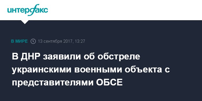 Москва. 13 сентября. INTERFAX.RU - Вооруженные силы Украины обстреляли Донецкую фильтровальную станцию во время нахождения там представителей миссии ОБСЕ, заявили в самопровозглашенной Донецкой народной республике.