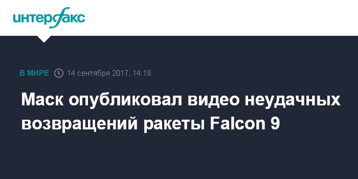 Москва. 14 сентября. INTERFAX.RU - "Как не надо приземлять орбитальную ракету-носитель" - с таким названием Илон Маск, основатель Tesla и SpaceX, опубликовал в своем инстаграмме видео с неудачными приземлениями ракеты-носителя Falcon 9.
