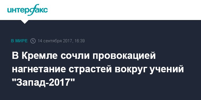 В Кремле сочли провокацией нагнетание страстей вокруг учений "Запад-2017"