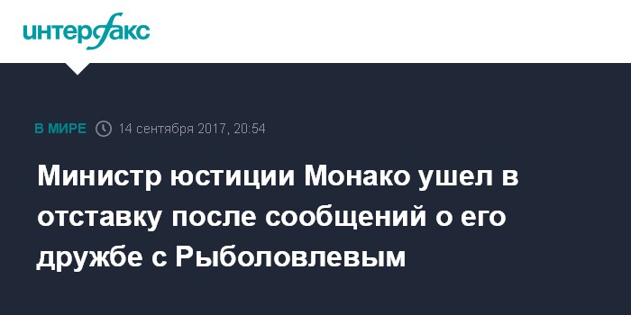 Министр юстиции Монако ушел в отставку после сообщений о его дружбе с Рыболовлевым