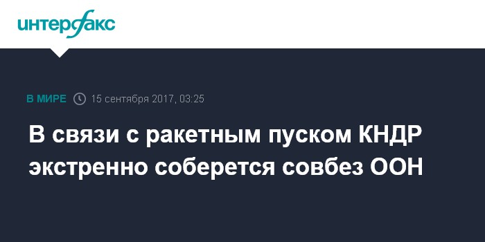 Москва. 15 сентября. INTERFAX.RU - Соединенные Штаты, Япония и Южная Корея запросили на пятницу проведение экстренных консультаций Совета Безопасности ООН в связи с очередным пуском ракеты КНДР, сообщил "Интерфаксу" источник в штаб-квартире Всемирной организации.