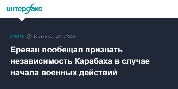 Москва. 18 сентября. INTERFAX.RU - Армения признает независимость Нагорного Карабаха, если начнется война, которую невозможно будет остановить, заявил глава МИД Армении Эдвард Налбандян.