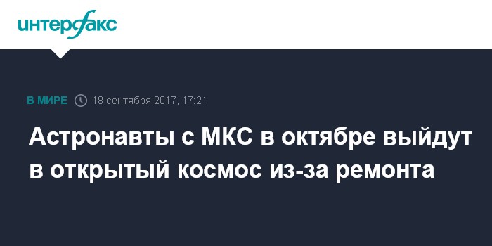 "Внеочередной выход в открытый космос с борта МКС по американской программе готовится 5 октября. Предварительно, в космос выйдут два астронавта", - сказал источник.