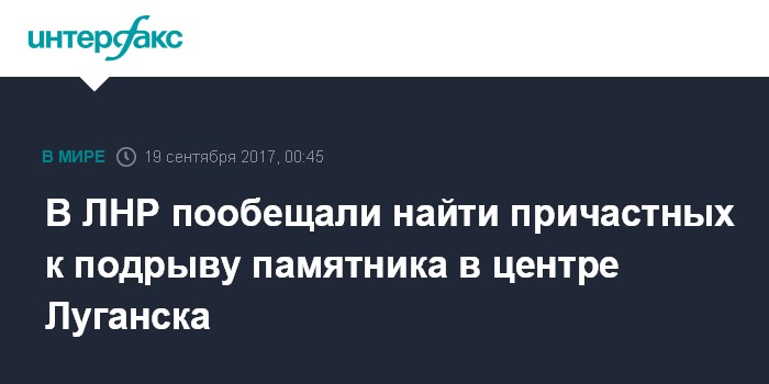 Москва. 19 сентября. INTERFAX.RU - Власти самопровозглашенной Луганской народной республики (ЛНР) уверены, что правоохранители найдут причастных к подрыву памятника погибшим десантникам в центре Луганска.