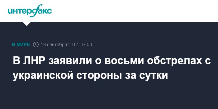 Москва. 19 сентября. INTERFAX.RU - Украинские военные восемь раз за прошедшие сутки обстреляли территорию самопровозглашенной Луганской народной республики (ЛНР), сообщили "Интерфаксу" в Народной милиции ЛНР.