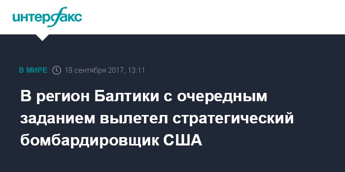 Москва. 19 сентября. INTERFAX.RU - На фоне проходящих российско-белорусских учений "Запад-2017" во вторник в регион Балтики вновь вылетел стратегический бомбардировщик ВВС США B-52H, способный нести ядерное оружие, сообщили западные авиационные сайты.