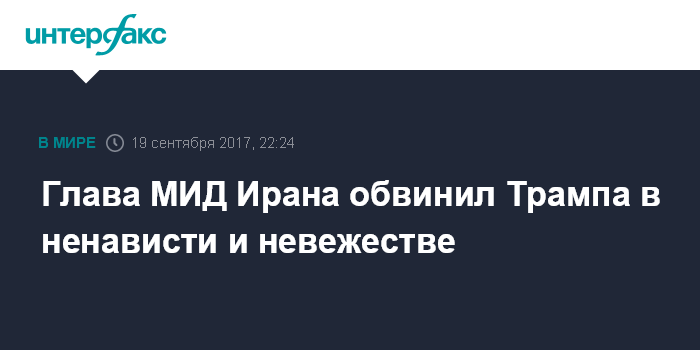 "Невежественная, ненавистническая речь Трампа имеет отношение к средневековым временам, а не к ООН XXI века, и она (речь - ИФ) недостойна ответа", - отметил министр. "Ложной симпатией к иранцам никого не обманешь", - добавил он.