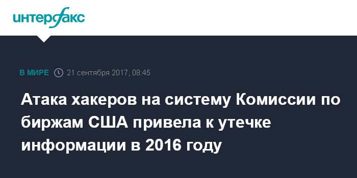 Москва. 21 сентября. INTERFAX.RU - Злоумышленники воспользовались уязвимостью в системе раскрытия информации Комиссии по ценным бумагам и биржам США (SEC) и получили в 2016 году доступ к непубличной информации, которую могли использовать для операций на рынке.