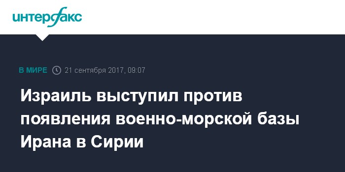 Москва. 21 сентября. INTERFAX.RU - Израиль выступает против создания иранской военно-морской базы в Сирии на Средиземном море, заявил министр, член узкого кабинета премьер-министра страны Йоав Галант.