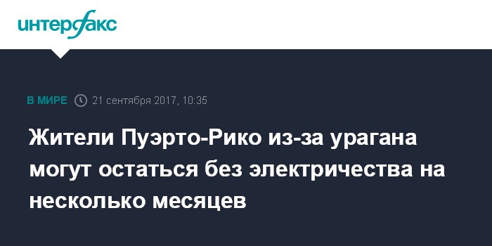 "Восстановление системы будет зависеть от масштабов ущерба. Я опасаюсь, что ущерб серьезный. Если это так, то речь идет о месяцах, а не о неделях или днях (для восстановления электроснабжения острова - ИФ)", - сказал Росселло в интервью CNN.