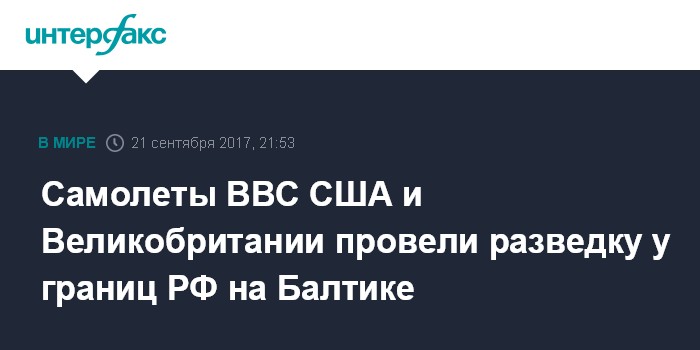 В последний день учений "Запад-2017" по меньшей мере 11 военных самолетов западных стран провели разведывательные полеты у границ Ленинградской, Псковской и Калининградской областей. В них были задействованы военные самолеты США, Великобритании, Германии, Дании, Швеции, командования НАТО, а также частной американской компании Dynamic Avlease Inc., оказывающей услуги армии США в сфере проведения воздушной разведки.
