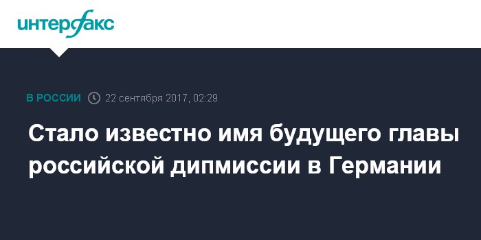 Стало известно имя будущего главы российской дипмиссии в Германии