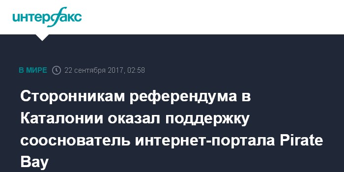 Сторонникам референдума в Каталонии оказал поддержку сооснователь интернет-портала Pirate Bay