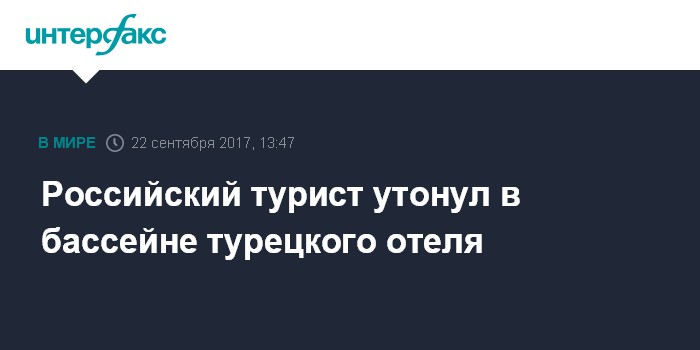 Москва. 22 сентября. INTERFAX.RU - В одном из отелей Антальи во время плавания в бассейне погиб 31-летний российский турист, сообщает турецкая газета Milliyet в пятницу.