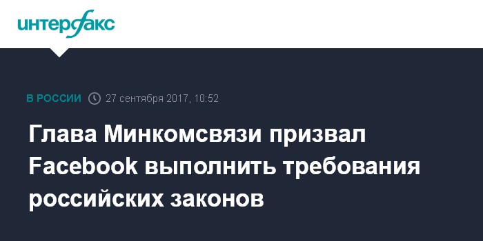 Глава Минкомсвязи призвал Facebook выполнить требования российских законов