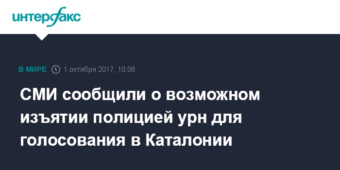 Москва. 1 октября. INTERFAX.RU - Правоохранительные органы Каталонии получили распоряжение проинформировать представителей избирательных комиссий после открытия участков о том, что урны для голосования могут быть изъяты, сообщает в воскресенье интернет-портал испанской газеты El Pais.