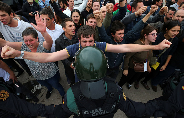 Ранее сообщалось, что испанская полиция в воскресенье использовала шумовые гранаты и резиновые пули для разгона желающих проголосовать на референдуме о самоопределении Каталонии.