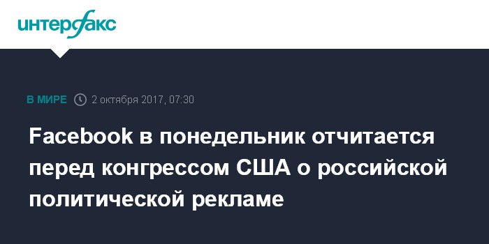Facebook в понедельник отчитается перед конгрессом США о российской политической рекламе