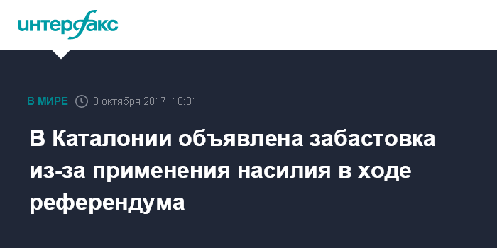 Ранее сообщалось, что к проведению в автономии всеобщей забастовки во вторник призвали руководители более чем 40 общественных организаций и профсоюзов Каталонии. Власти Каталонии также сообщили, что намерены обратиться к Евросоюзу с требованием рассмотреть вопрос о нарушении прав человека в ходе референдума.