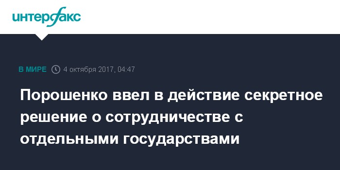 Порошенко ввел в действие секретное решение о сотрудничестве с отдельными государствами