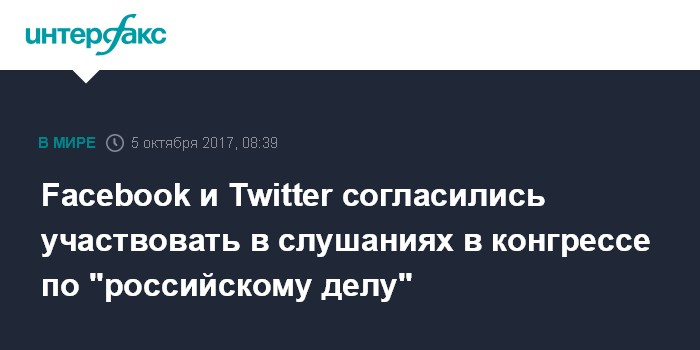 Facebook и Twitter согласились участвовать в слушаниях в конгрессе по "российскому делу"