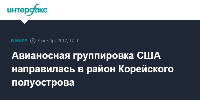 Как сообщило в минувшие выходные агентство "Рёнхап", ссылаясь на источник в министерстве обороны Южной Корее, на фоне обострения ситуации на Корейском полуострове американская авианосная ударная группа примет участие в совместных с кораблями ВМС Республики Корея учениях, которые будут проходить в середине октября в акватории Японского моря вблизи побережья КНДР.