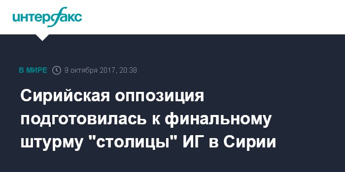 Москва. 9 октября. INTERFAX.RU - Поддерживаемые США вооруженные формирования в Сирии готовятся к заключительной атаке на частично удерживаемый террористами "Исламского государства" (запрещено в РФ) город Ракка на севере страны, сообщает агентство Associated Press.