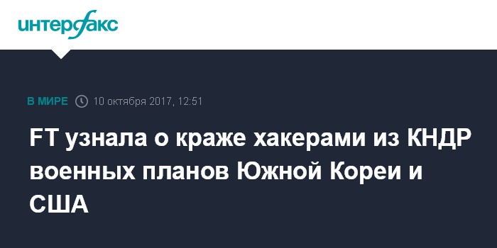 Москва. 10 октября. INTERFAX.RU - Северокорейским хакерам удалось взломать базу данных южнокорейских военных и извлечь из нее документы, содержащие совместные планы Сеула и Вашингтона на случай боевых действий с КНДР, пишет The Financial Times со ссылкой на представителя правящей партии Южной Кореи.