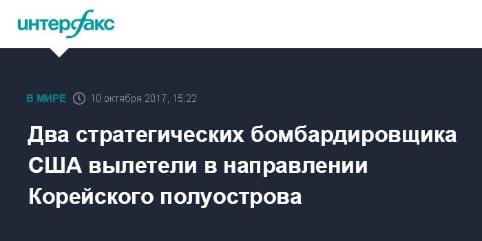 Два стратегических бомбардировщика США вылетели в направлении Корейского полуострова