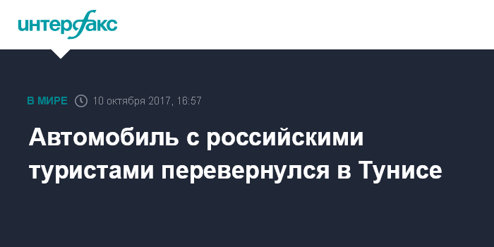 Москва. 10 октября. INTERFAX.RU - Пятеро российских туристов ранены в результате дорожно-транспортного происшествия, произошедшего утром во вторник в Тунисе. Об этом сообщает местное радио Mosaicfm.