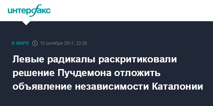 Левые радикалы раскритиковали решение Пучдемона отложить объявление независимости Каталонии