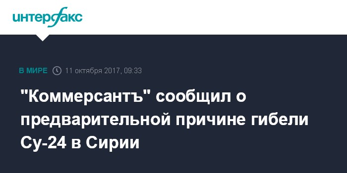 "Коммерсантъ" сообщил о предварительной причине гибели Су-24 в Сирии