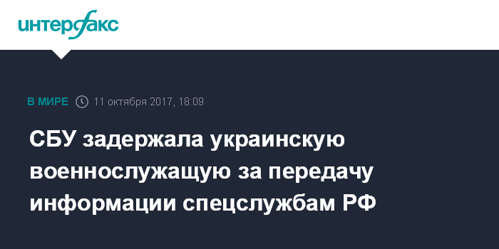 Москва. 11 октября. INTERFAX.RU - Служба безопасности Украины задержала военнослужащую национальной гвардии, которая передавала секретную информацию спецслужбам РФ, сообщил глава СБУ Василий Грицак.