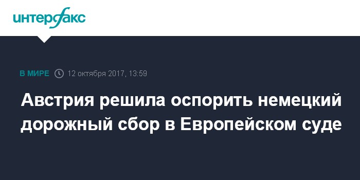 Москва. 12 октября. INTERFAX.RU - Австрия обратилась с иском в Европейский суд в связи с введением Германией дорожного сбора для легковых автомобилей.