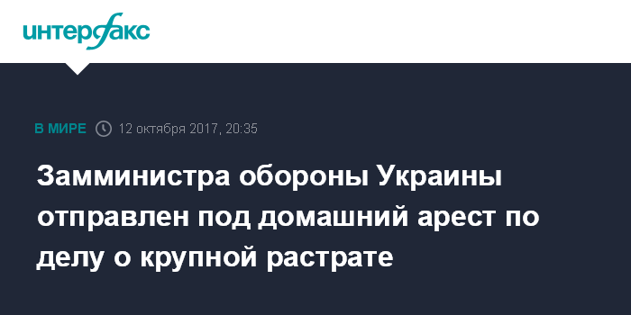 Замминистра обороны Украины отправлен под домашний арест по делу о крупной растрате