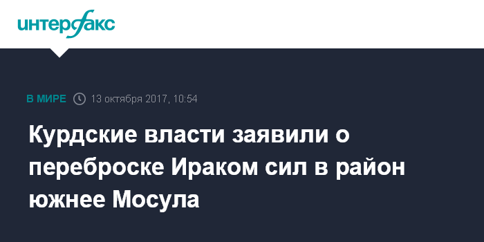 Курдские власти заявили о переброске Ираком сил в район южнее Мосула