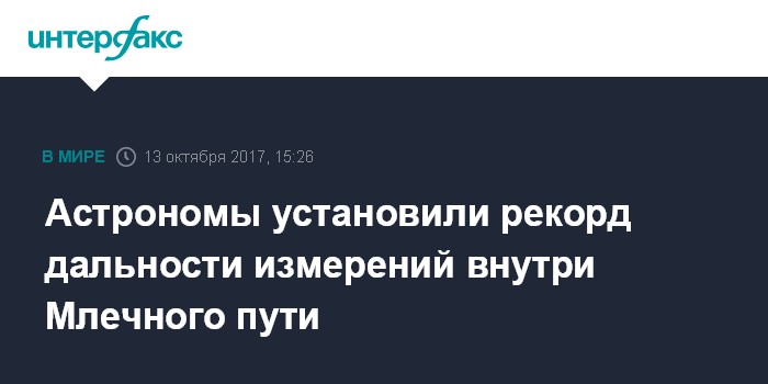 Москва. 13 октября. INTERFAX.RU - Астрономы из Радиоастрономического института Макса Планка и Гарвард-Смитсоновского центра астрофизики установили новый рекорд дальности измерений расстояний внутри галактики Млечный путь - 66 тысяч световых лет. Об этом сообщает сайт N+1. Научная статья вышла в журнале Science.