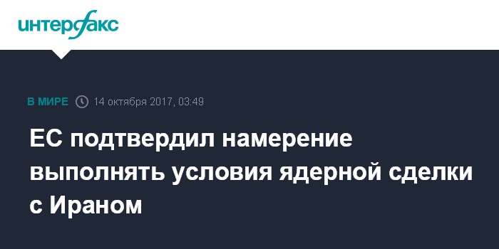 ЕС подтвердил намерение выполнять условия ядерной сделки с Ираном
