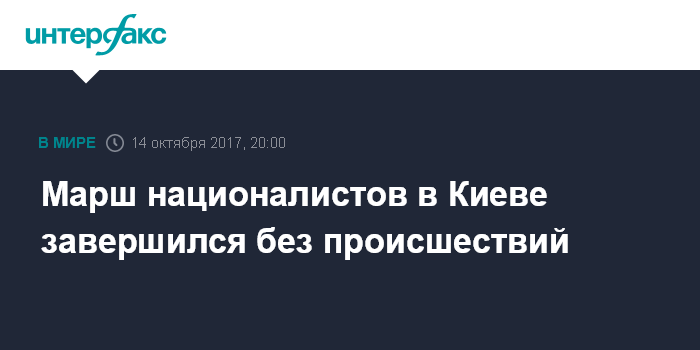 Москва. 14 октября. INTERFAX.RU - Проводимый украинскими националистами по случаю Дня защитника Украины и 75-летия создания УПА (запрещена в РФ) марш в центральной части Киева завершился концертом на Контрактовой площади.
