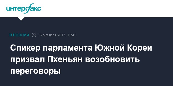 Москва. 15 октября. INTERFAX.RU - Глава Национальной ассамблеи Южной Кореи Чон Се Гюн призвал КНДР вернуться за стол переговоров.