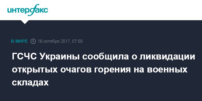 Москва. 16 октября. INTERFAX.RU - На военных складах вблизи города Калиновка Винницкой области открытых очагов горения и взрывов боеприпасов не наблюдается, сообщили в Госслужбе по чрезвычайным ситуациям Украины.