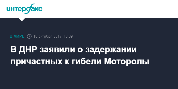 Москва. 16 октября. INTERFAX.RU - В самопровозглашенной Донецкой народной республике задержали членов украинской группировки, причастной к гибели ополченца Арсена Павлова, известного как Моторола, сообщает Донецкое агентство новостей.