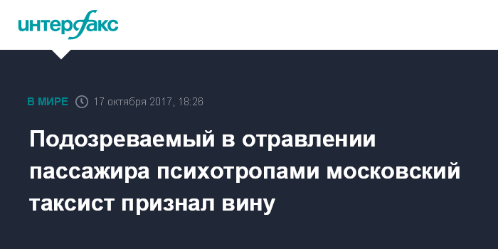 Подозреваемый в отравлении пассажира психотропами московский таксист признал вину