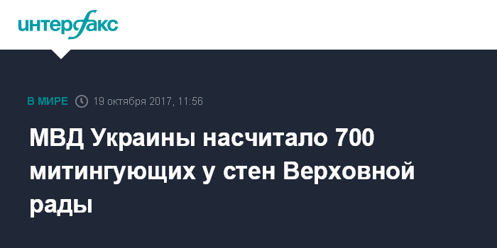 "По состоянию на 11:00 в мероприятиях у Рады участвует около 700 лиц", - сказано в сообщении МВД Украины в микроблоге Твиттер в четверг.
