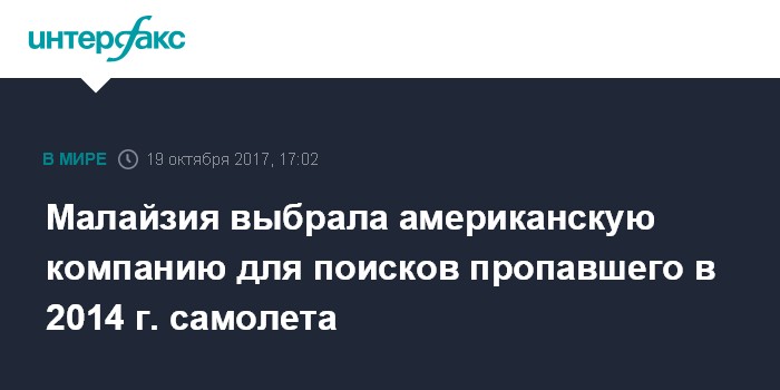 Москва. 19 октября. INTERFAX.RU - Власти Малайзии ведут переговоры с американской Ocean Infinity по условиям возобновления поисков пропавшего в 2014 году самолета "Малайзийских авиалиний", сообщает в четверг сайт телеканала ABC News.