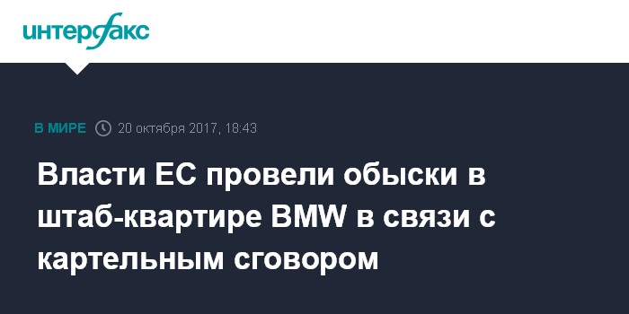 Москва. 20 октября. INTERFAX.RU - Исполнительное подразделение Европейской комиссии на этой неделе организовало обыски в штаб-квартире Bayerische Motoren Werke AG (BMW) в Мюнхене.