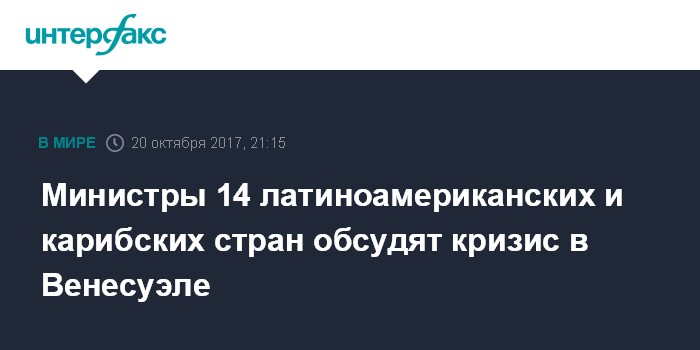 Москва. 20 октября. INTERFAX.RU - Министры 14 стран Латинской Америки и Карибских островов обсудят ситуацию в Венесуэле на встрече, которая состоится в Канаде на следующей неделе, сообщила в пятницу глава МИД Канады Христя Фриланд.